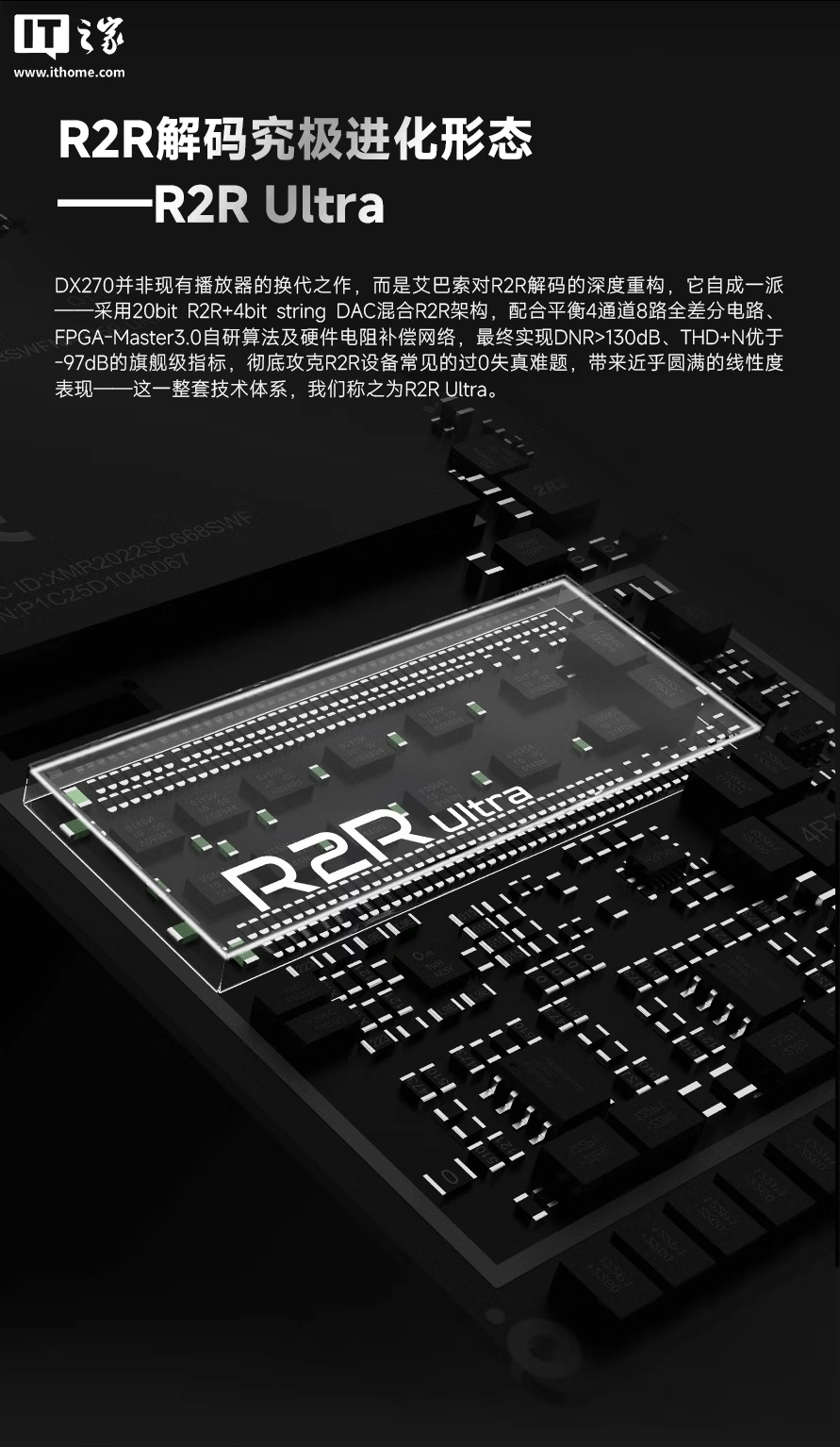 IT之家12月27日消息专业的股票门户网站,艾巴索现已推出DX270R2R Ultra音乐播放器,配备平衡4通道8路全差分电路、FPGA主控,搭载高通骁龙665芯片,售价7399元。